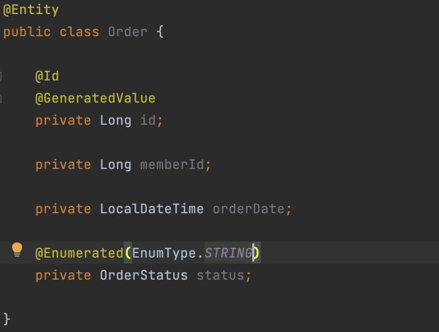 이제 status를 만들어주는데, 이건 주문의 상태인데