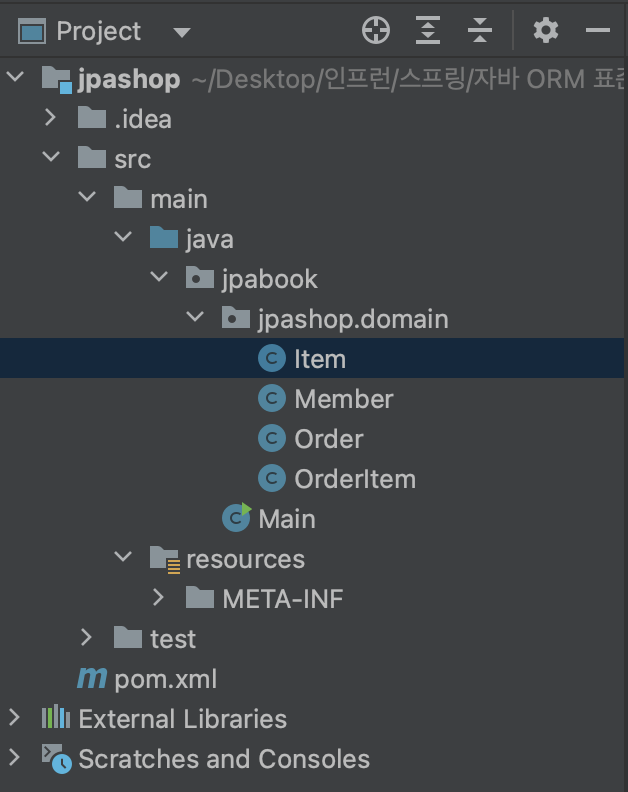 자 이걸 엔티티로 매핑을 하면 이 모양이 됩니다.