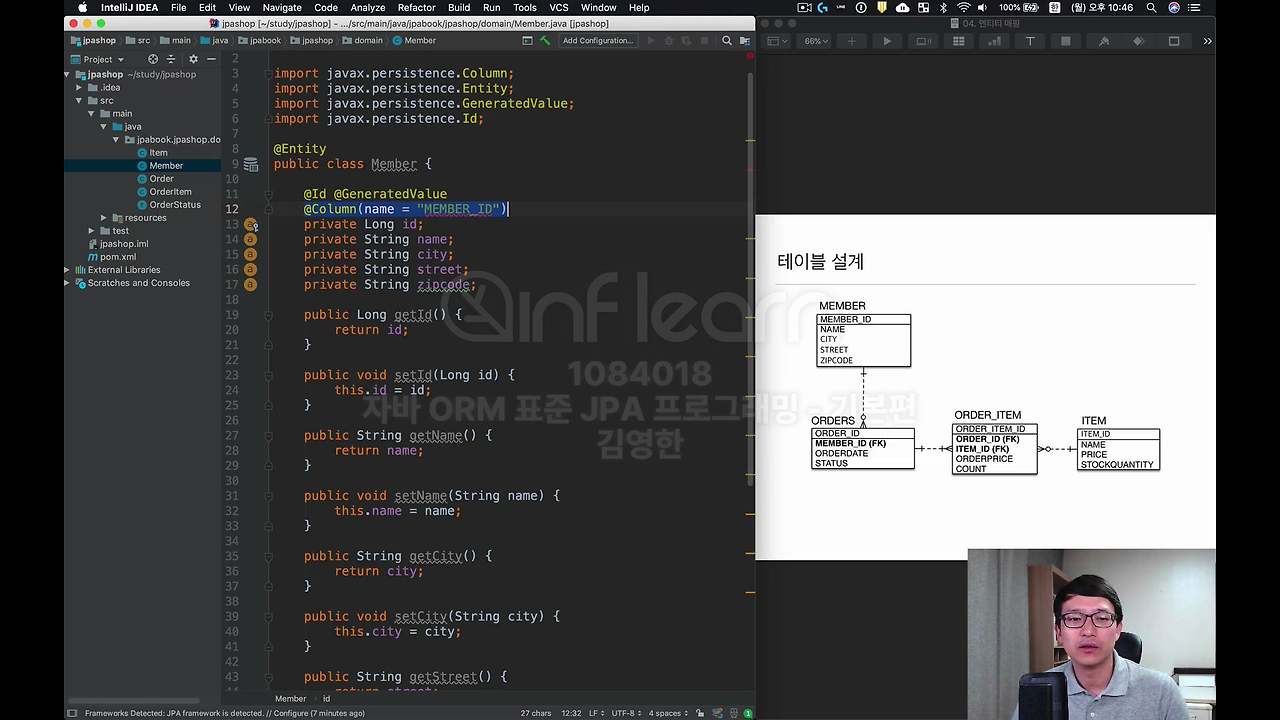 방금 테이블이었고 엔티티 같은 경우에는 Member가 쭉 나오고요.