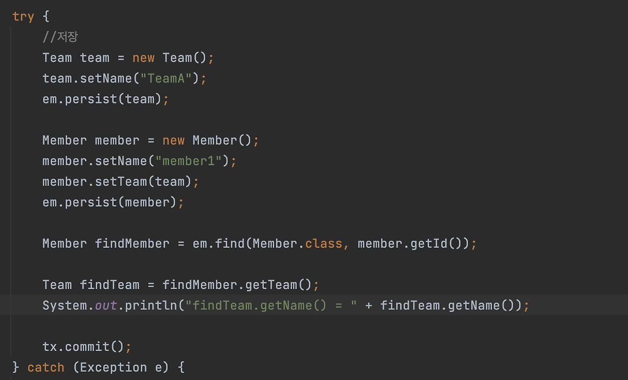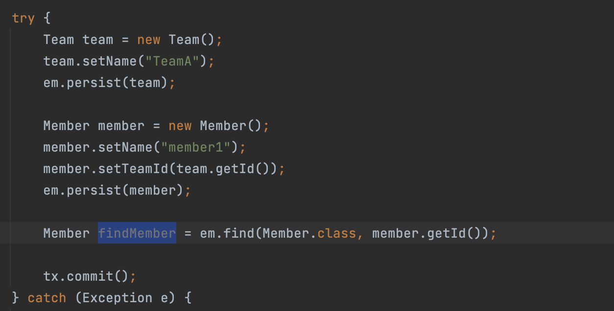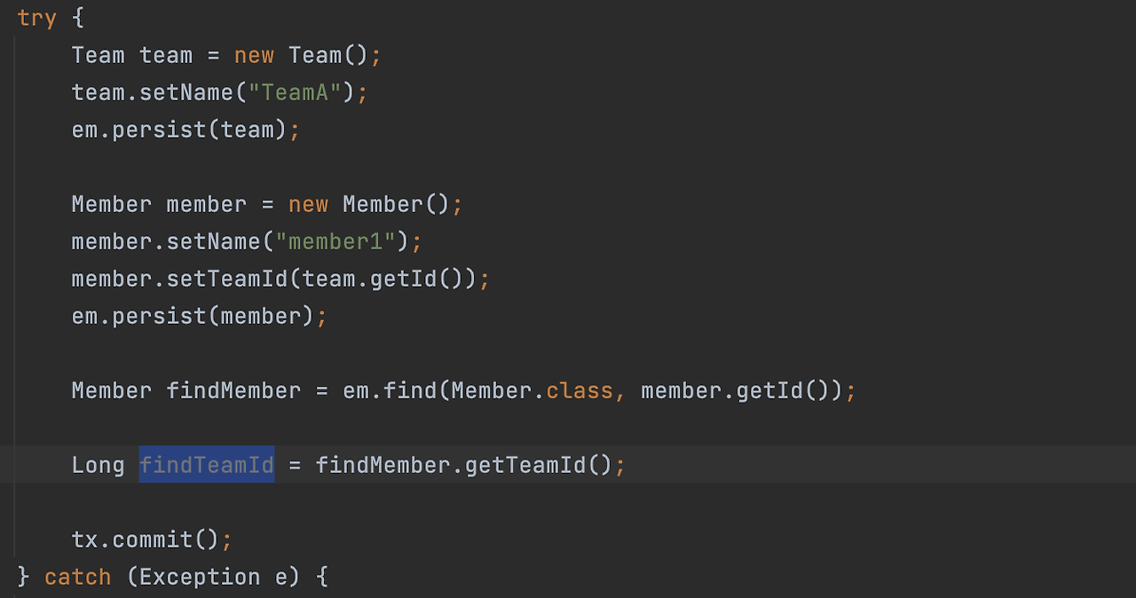 em.find 해서 Team을 찾은 다음에 findTeamId를 넣어서 Team을 꺼내야 되죠.