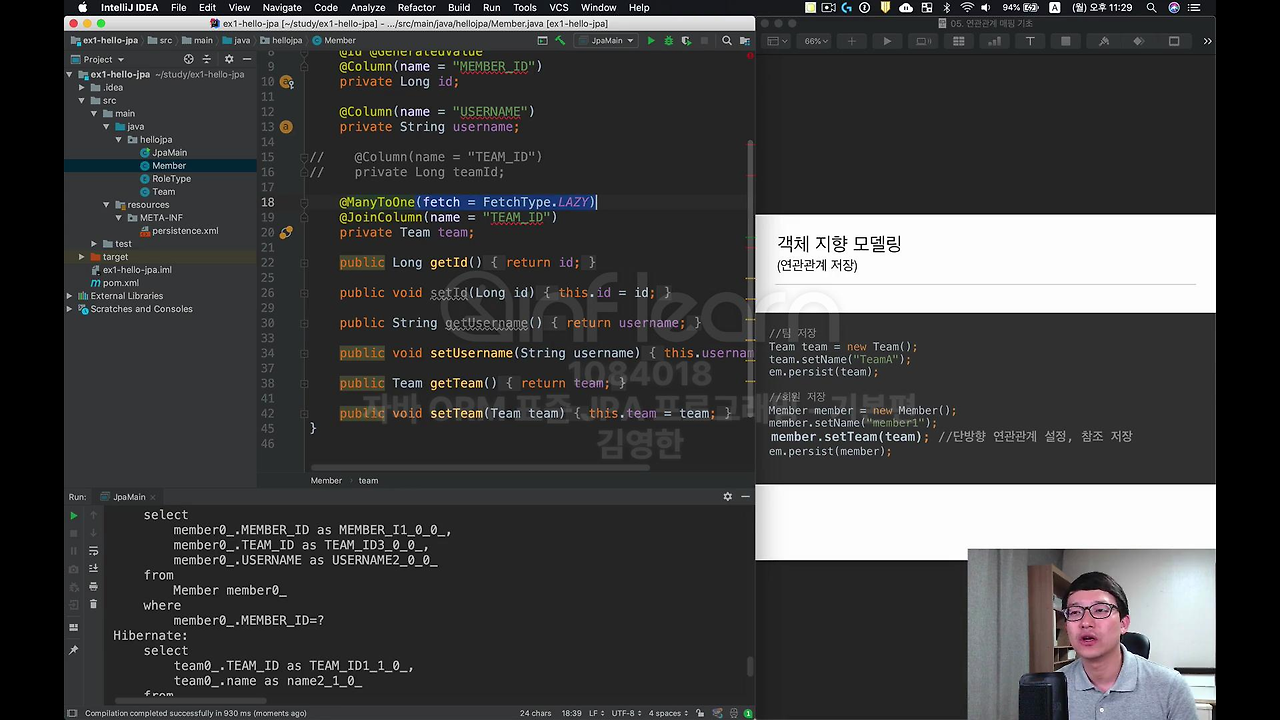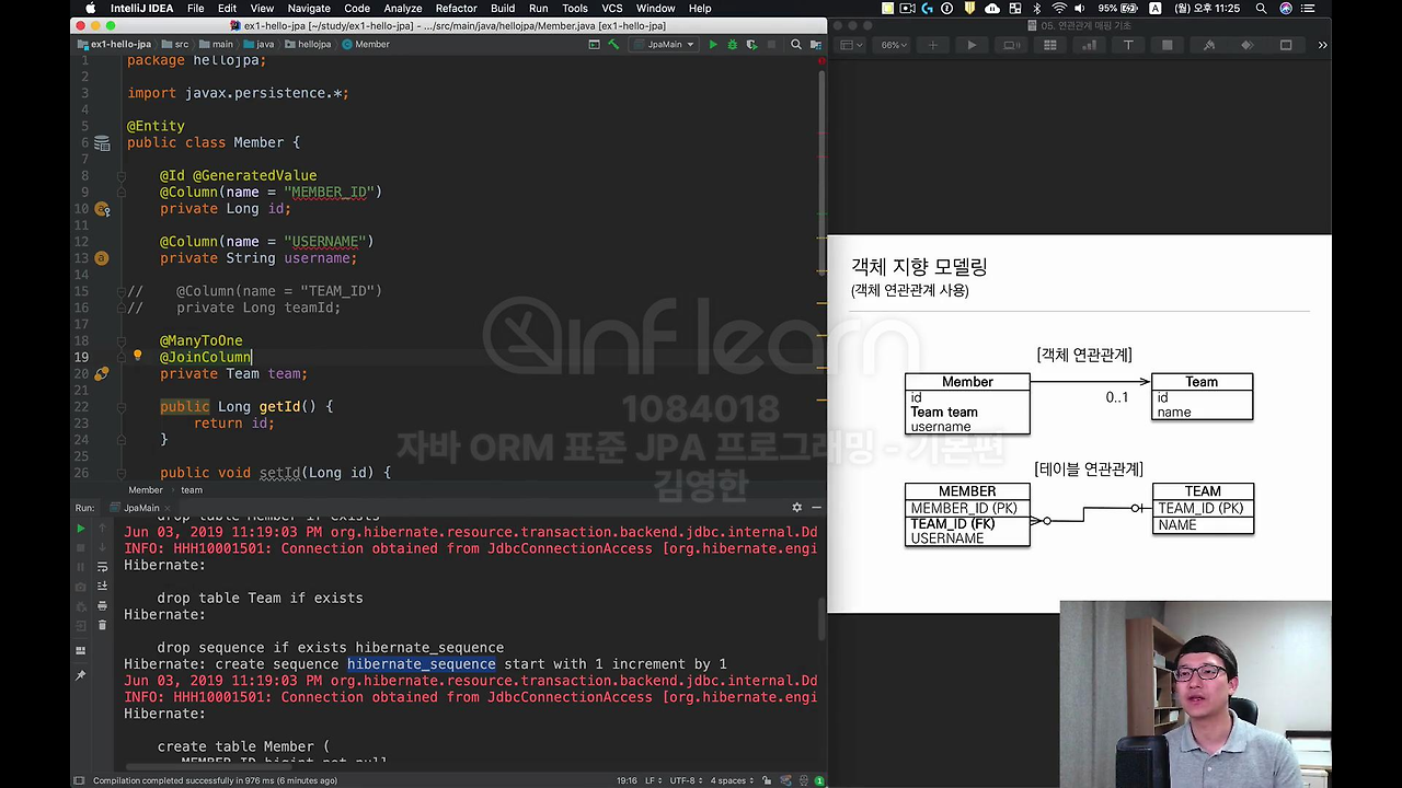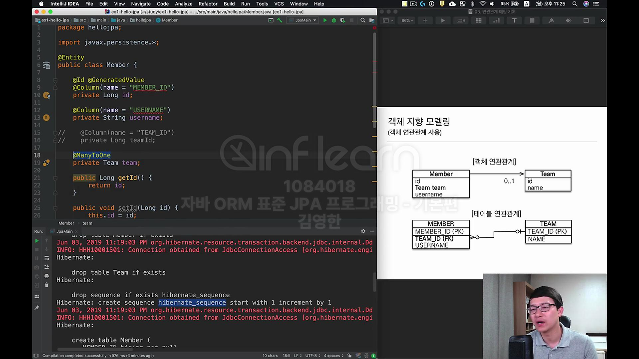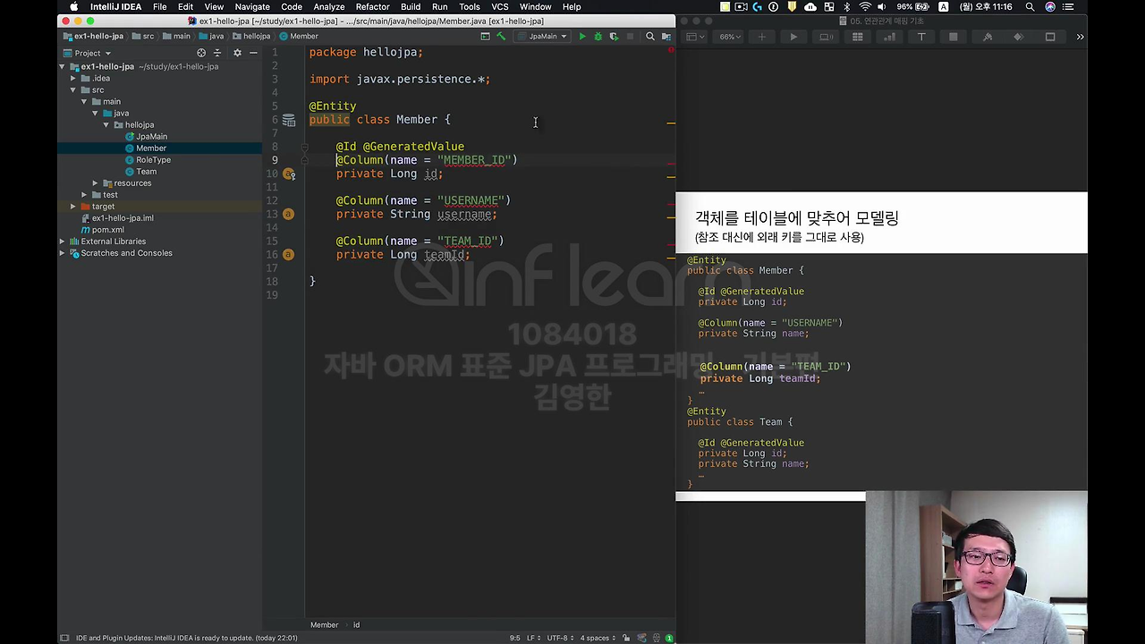자 그래서 사실상 이번 시간에 배우는 건 뭐냐면 객체의 참조와 테이블의 외래 키를 어떻게 맵핑하는지 배우는 겁니다.