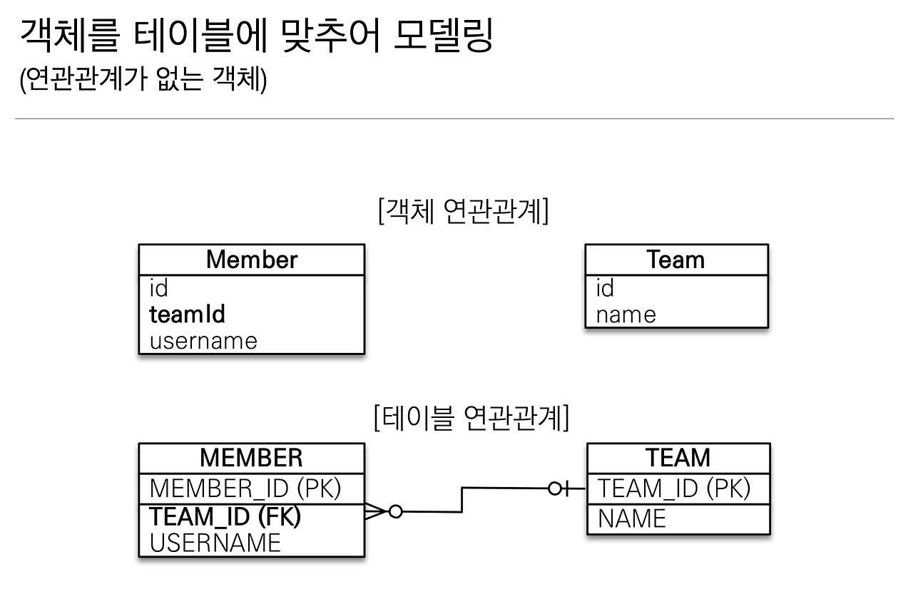 이렇게 작성하면 됩니다. 왜냐하면 Member는 Member랑 Team을 레퍼런스로 가져가야 되는데, 그게 아니라 지금 DB에 맞춰서 딱 모델링을 한 거죠.
