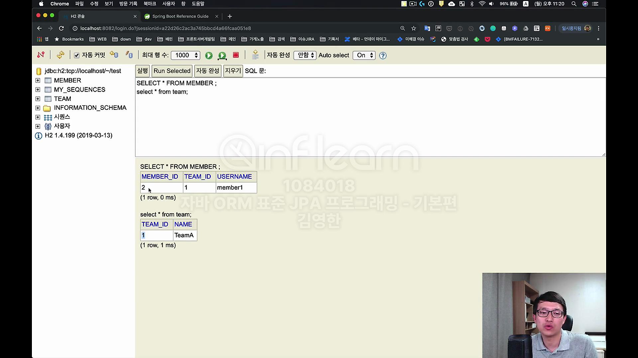 Member가 잘 나왔고, Team도 보시면 id가 1번에 name이 잘 세팅 됐죠. Memeber도 보시면 됐죠. 이 id가 1이고 2인 것은