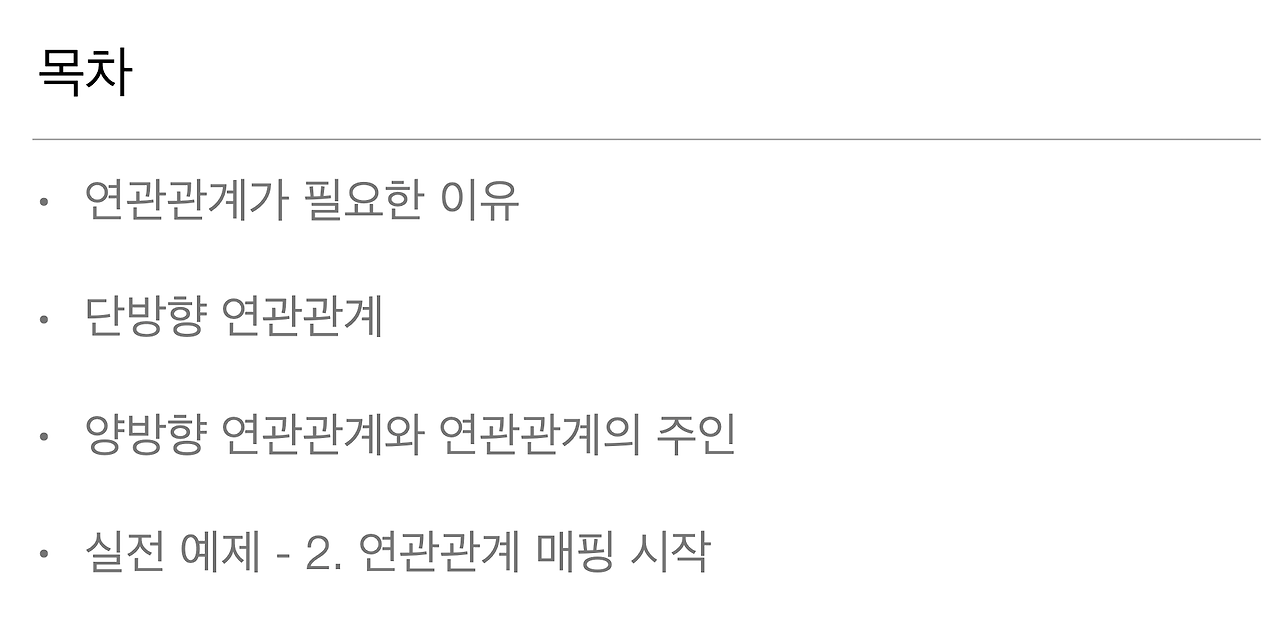 연관관계 목차는 이렇게 쭉 있는데요.