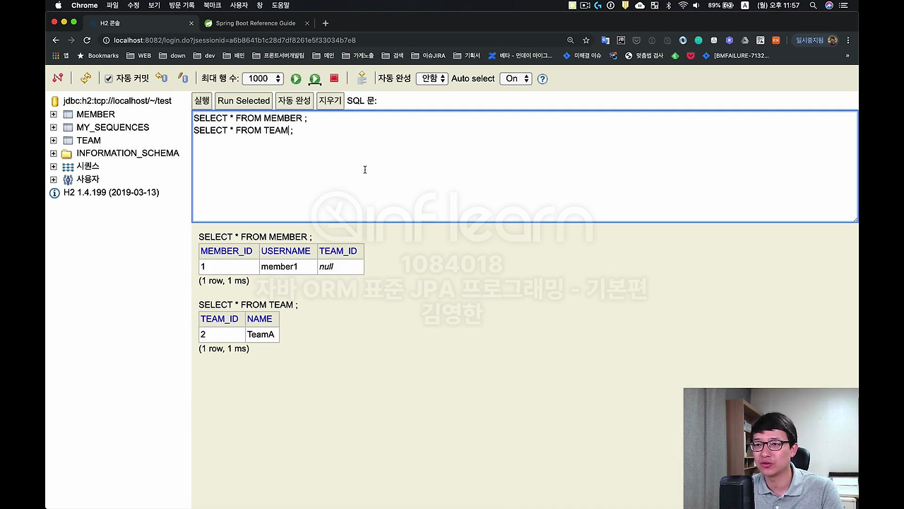 이때 잘 보시면 JPA가 무슨 일을 하냐면, 이 쿼리. 이 Team Select 쿼리가 나가죠. 이거는 이제 Team을 조회했을 때