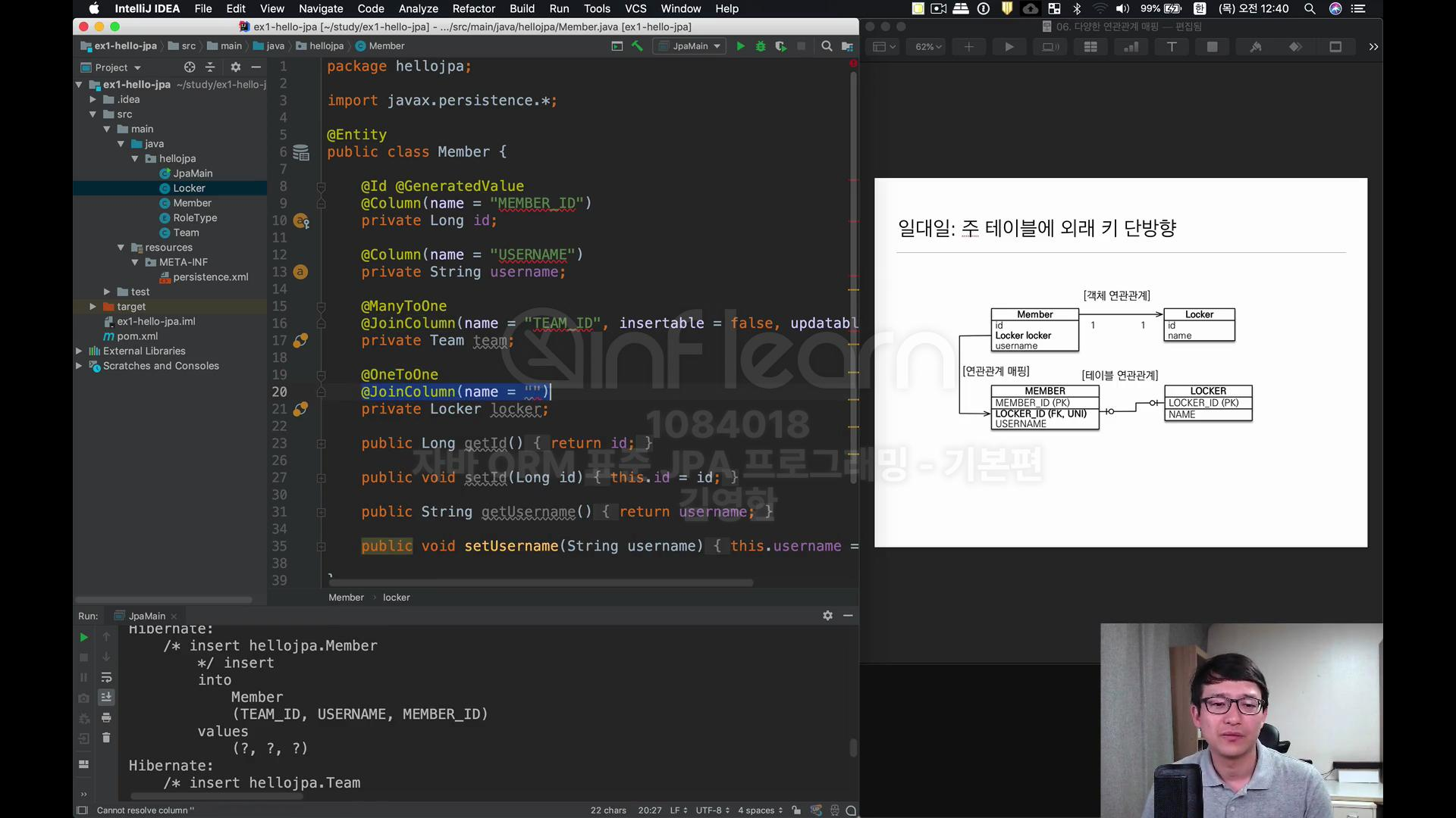 근데 이제 DB 입장에서는 그렇고 이거를 ORM 맵핑을 해서 실제 개발해야 되는 개발자 입장에서는 또 어떤 딜레마가 있냐면 Member에 이 locker가 있는 게 성능도 그렇고 여러 가지로 유리해요. 어떤 장점이 있냐면,