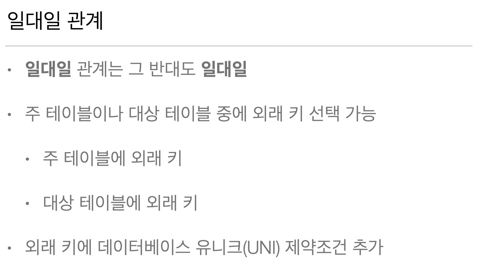 이번에는 일대일 관계에 대해서 설명을 드리겠습니다.