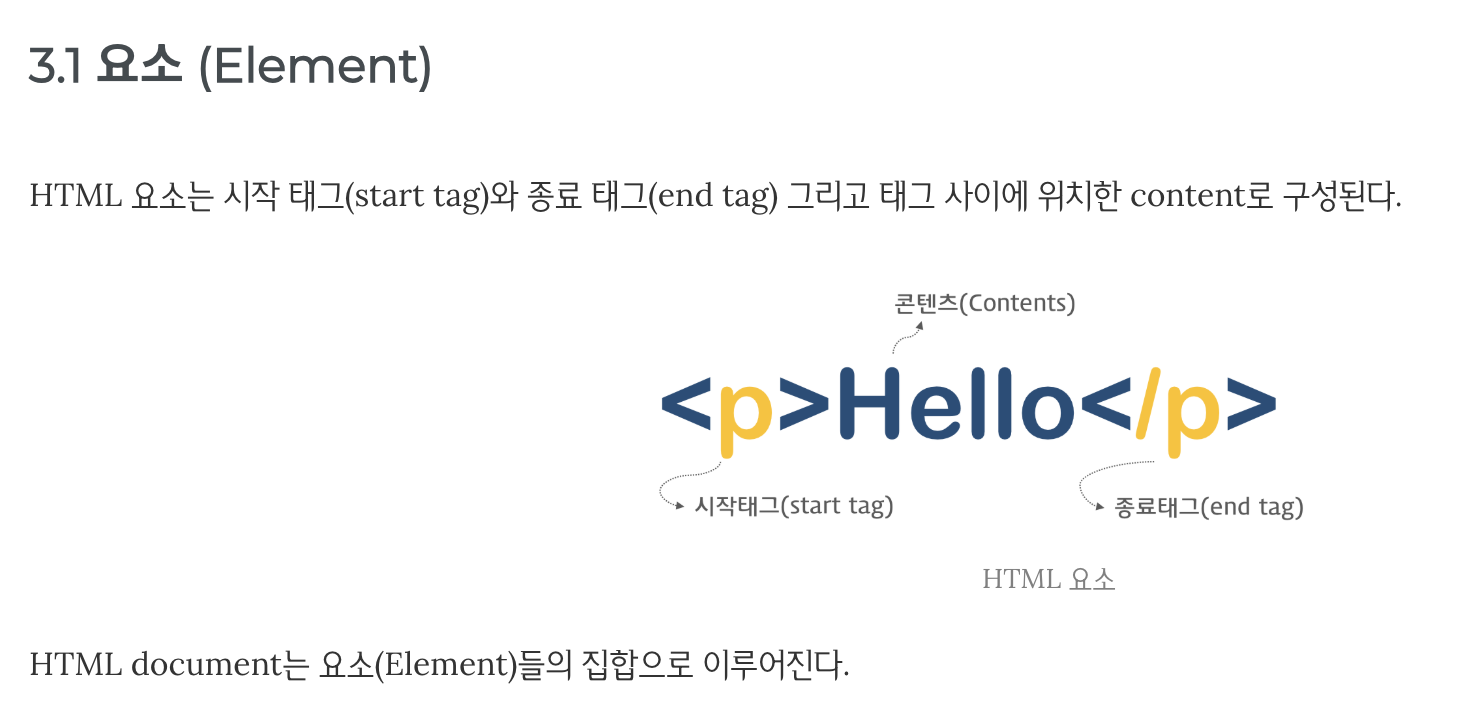 - <p>: 단락을 나타내는 태그, 텍스트를 문단 단위로 구분.
