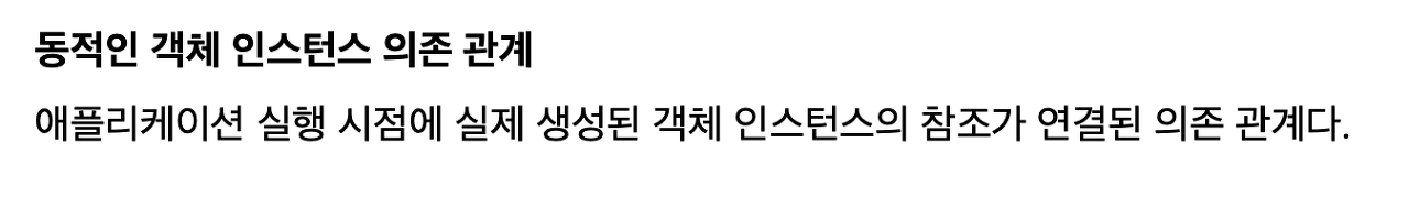 그래서 이런 거를 동적인 객체(인스턴스) 의존 관계라고 합니다.