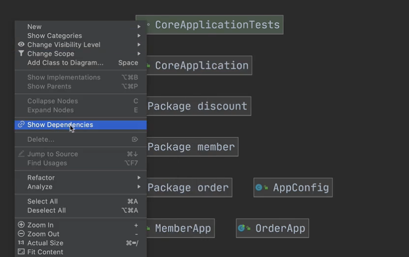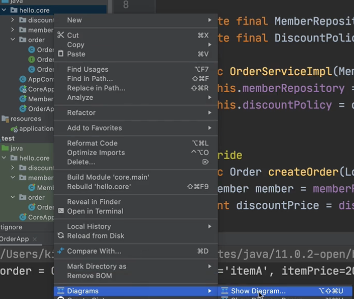 OrderServiceImpl을 보면, 의존관계가 Member, MemberRepository, DiscountPolicy 등 이 정도 사용하죠.