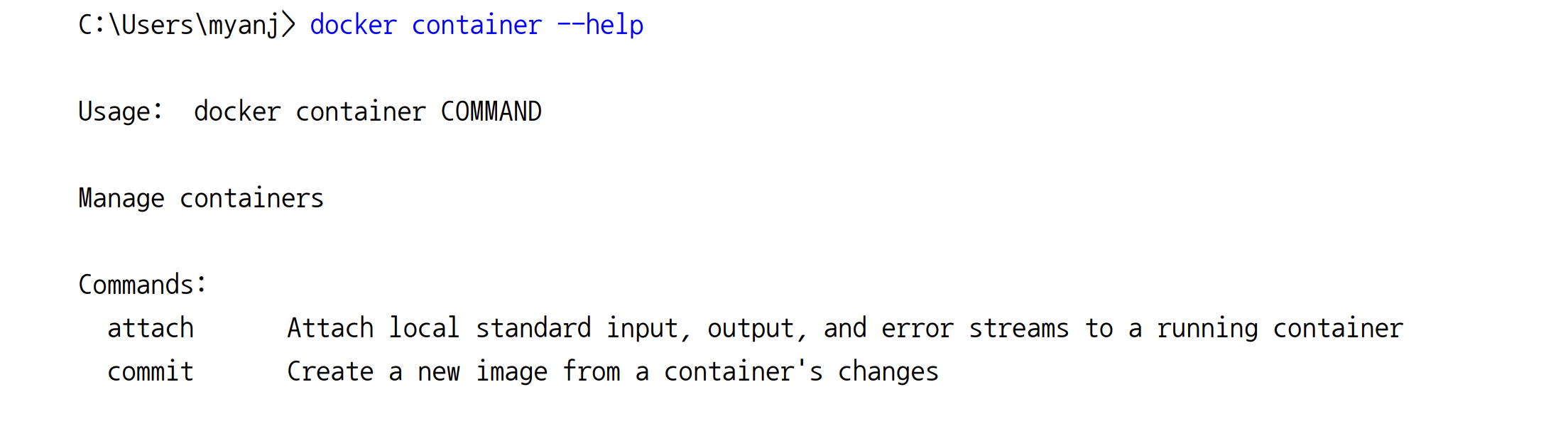 내가 여기서 container와 관련된 명령어를 알고싶다고 하면,