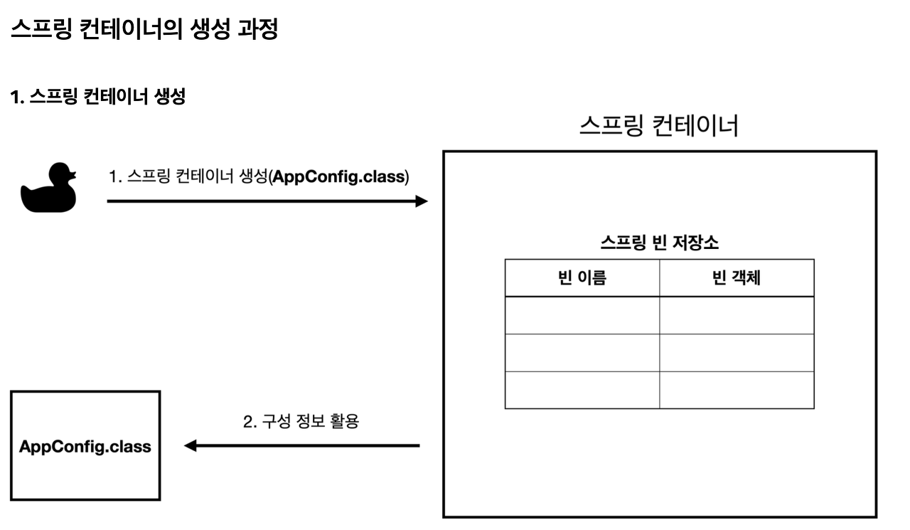 먼저, new AnnotationConfigApplicationContext(AppConfig.class)를 하면서 AppConfig 정보를 주는 거에요. 그게 그림상에서 1번입니다.