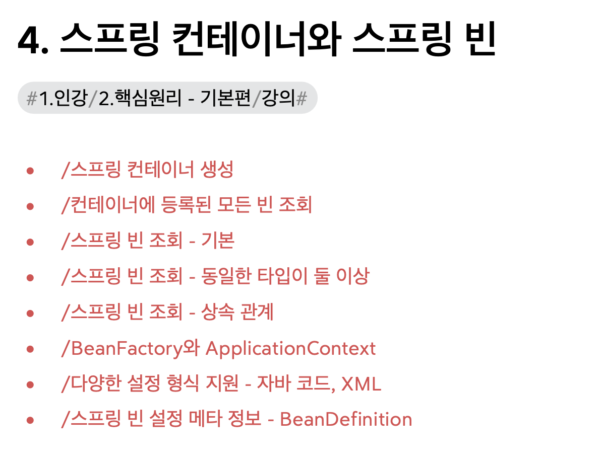 다음 시간부터는 스프링 컨테이너에서 데이터를 조회해봅시다. 컨테이너에 등록된 빈을 한번 조회해볼게요. 지금까지 등록한게 다 잘 등록이 됐나 전체에서 한번 조회하는 거를 보여드리겠습니다.
