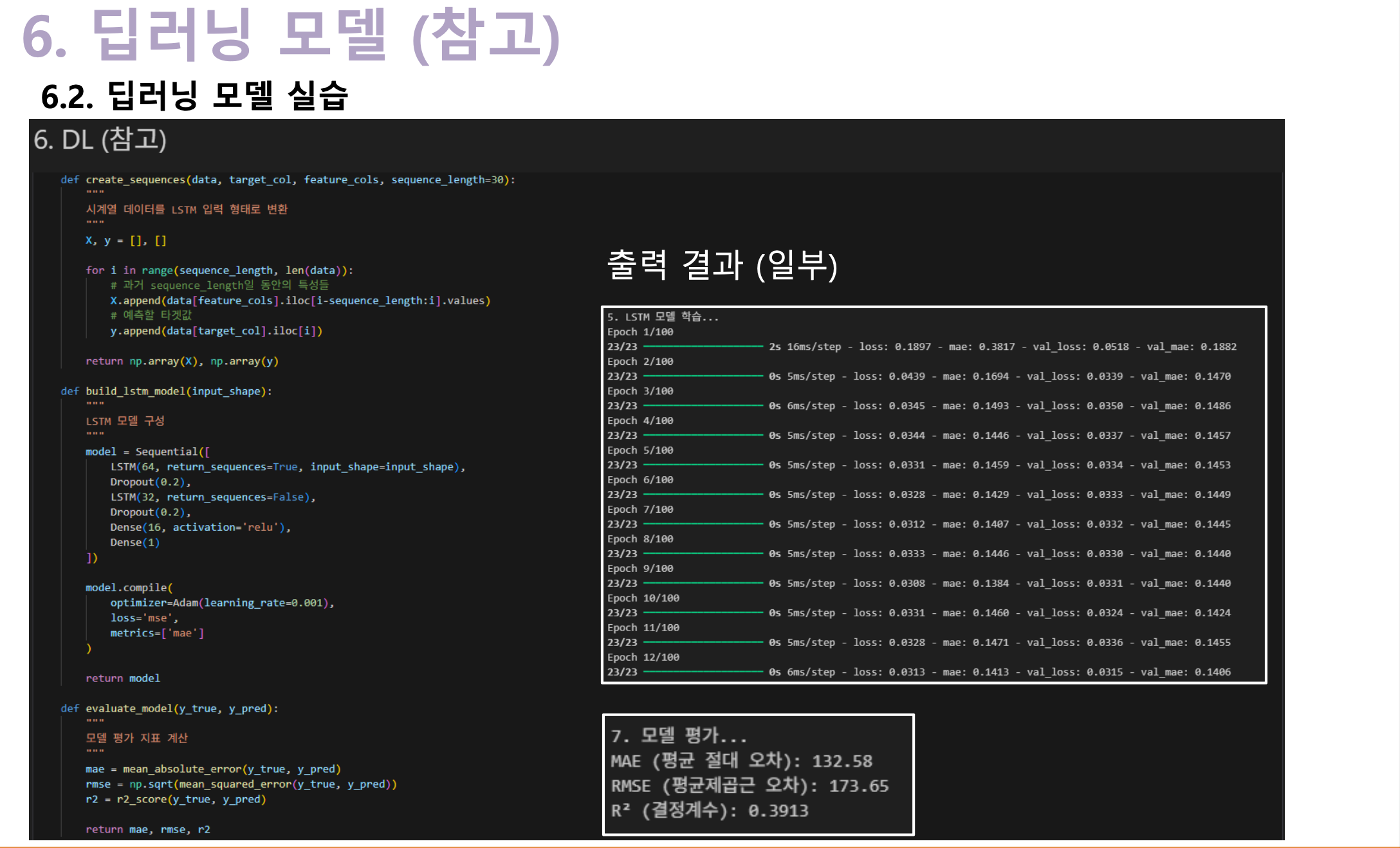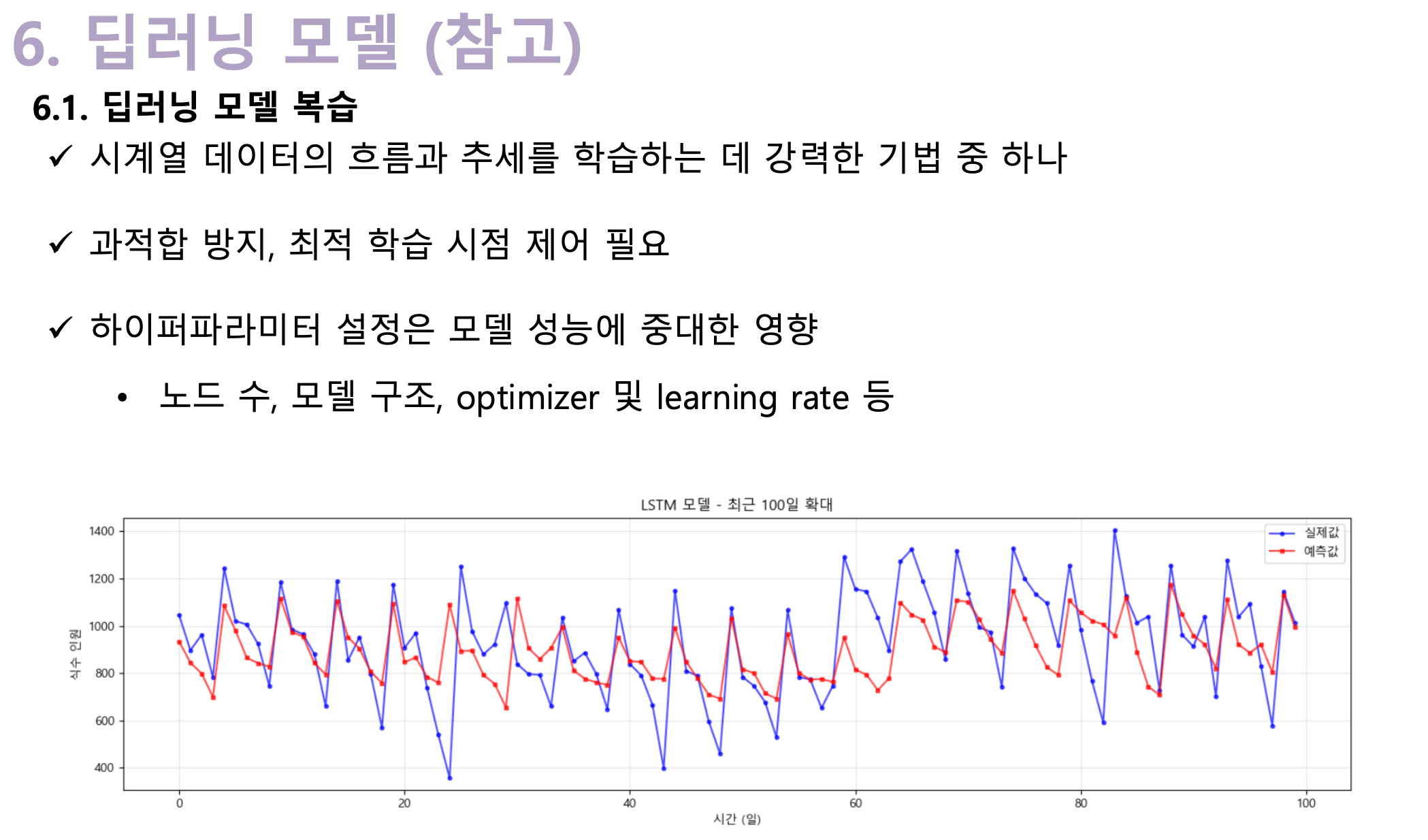 마지막으로 참고를 하기 위해서 딥러닝 모델을 설명 할 것임. 딥러닝 모델도 시계열 데이터의 흐름과 추세를 학습하는데 강력한 기법 중 하나다.