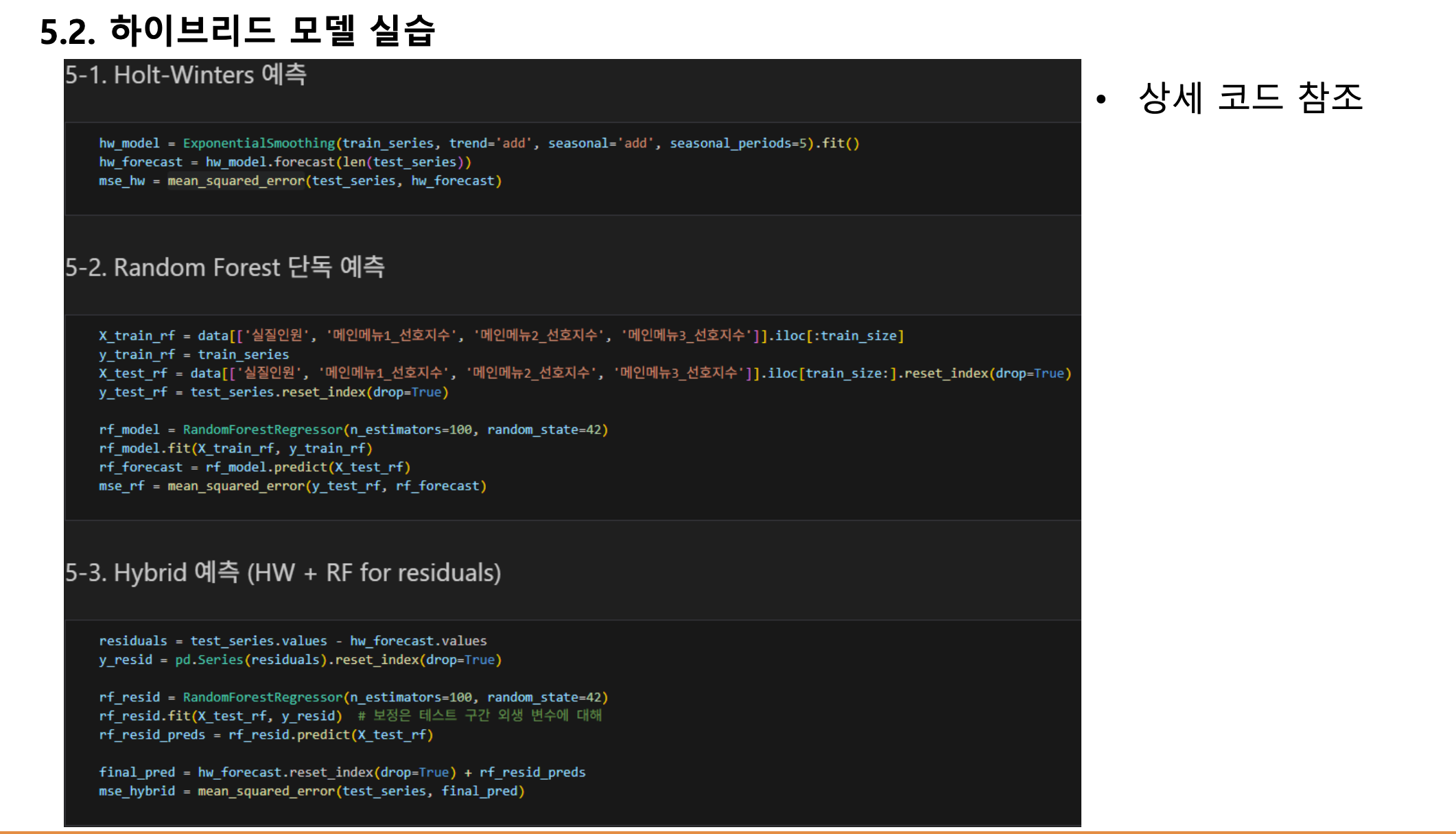 검정색이 실제 식수 비율. 그래서 이 주어진 데이터에 대해서는 하이브리드 모델이 굉장히 수요예측을 잘 했다는 것이다.