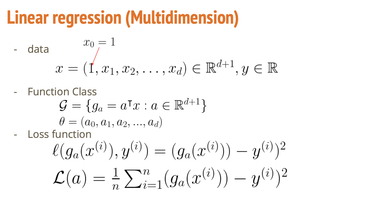 → a = (b, a₁, ..., a_d)로 확장하면 식이 y = aᵀx로 정리