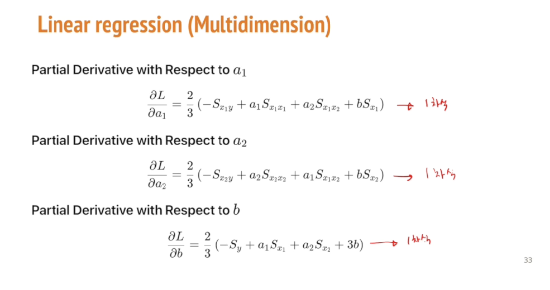 변수가 늘어나도 걱정하지 않아도 됨. 어차피 1차식으로 나온다.