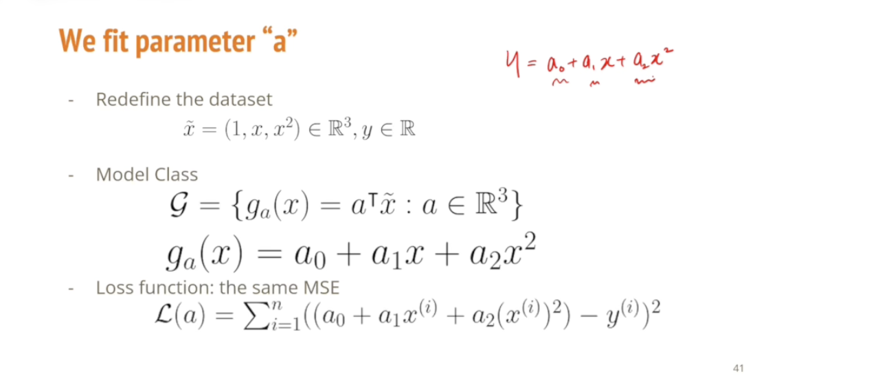 이 a0, a1, a2 에 대한 일차식, 선형함수는 여전하기 때문에 이 문제 역시도 선형 회귀로 풀도록 하자.