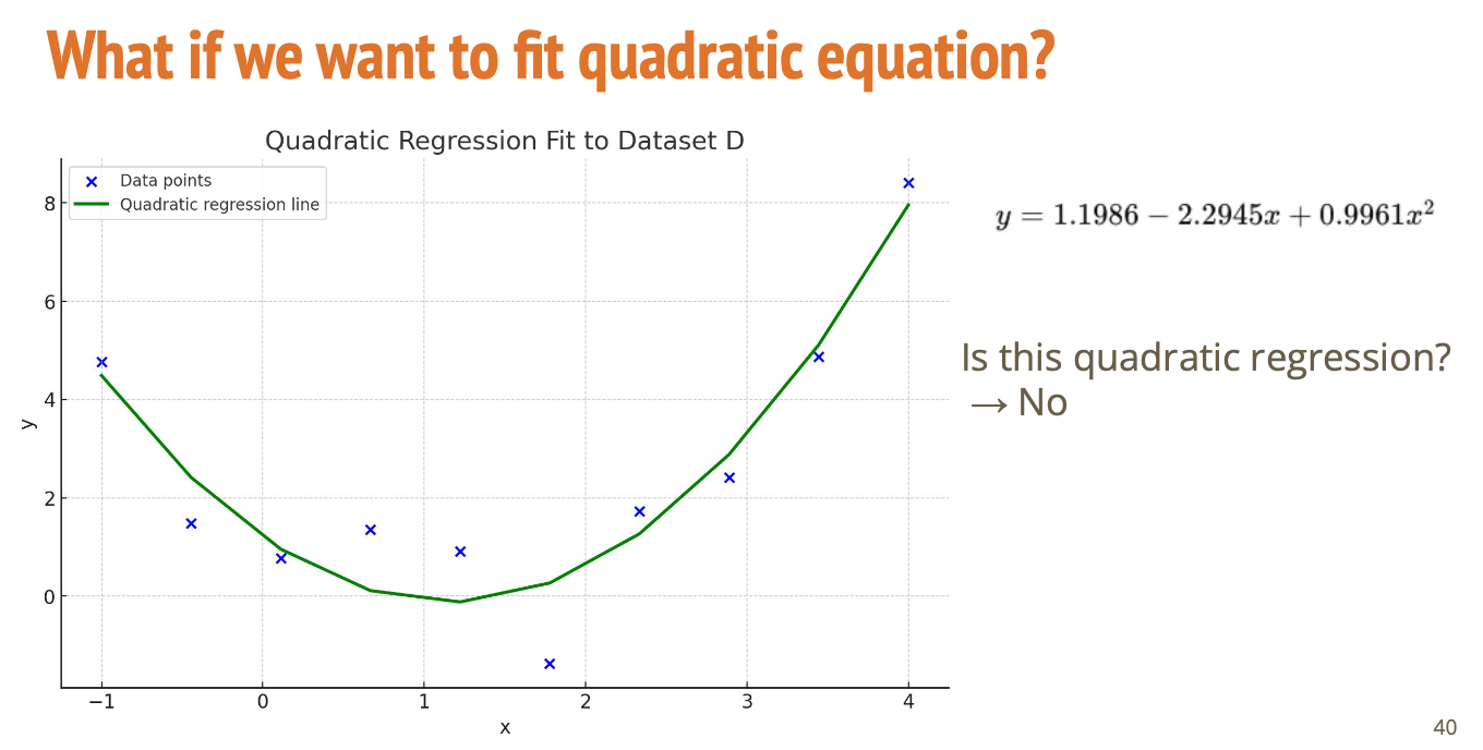 그럼 이건 선형 회귀가 아니고 이차 함수니까 이차 회귀겠네? -> NO🙅🏻♀️