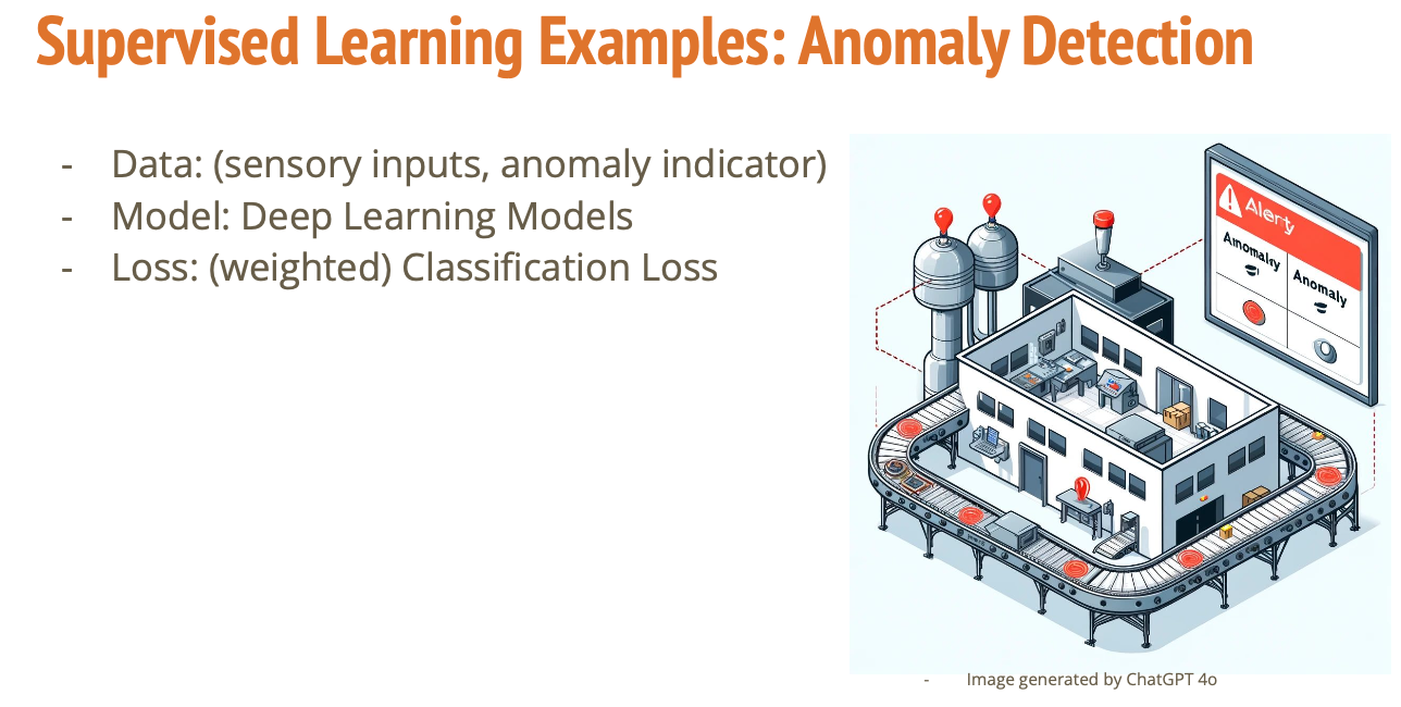 그 다음에 우리가 어떤 모델 종류를 딥러닝 모델을 사용하고 그 다음에 비정상적인 것을 잘 맞추는지 못 맞추는 지를 우리가 트레이닝 할 수 있기 때문에 역시 이 문제도 우리가 지도학습의 일부 라고 말할 수 있음.