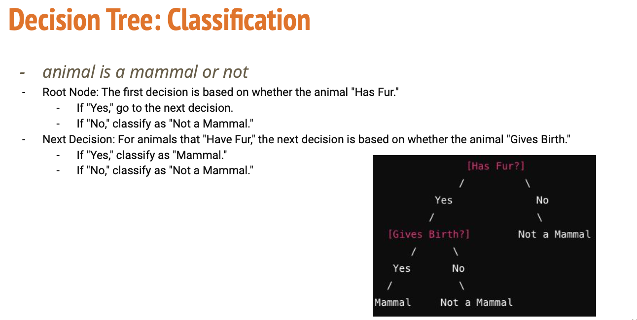 | Leaf Node | 최종 결과 (클래스 or 값) | “포유류입니다” 또는 “가격은 25만 달러입니다” |