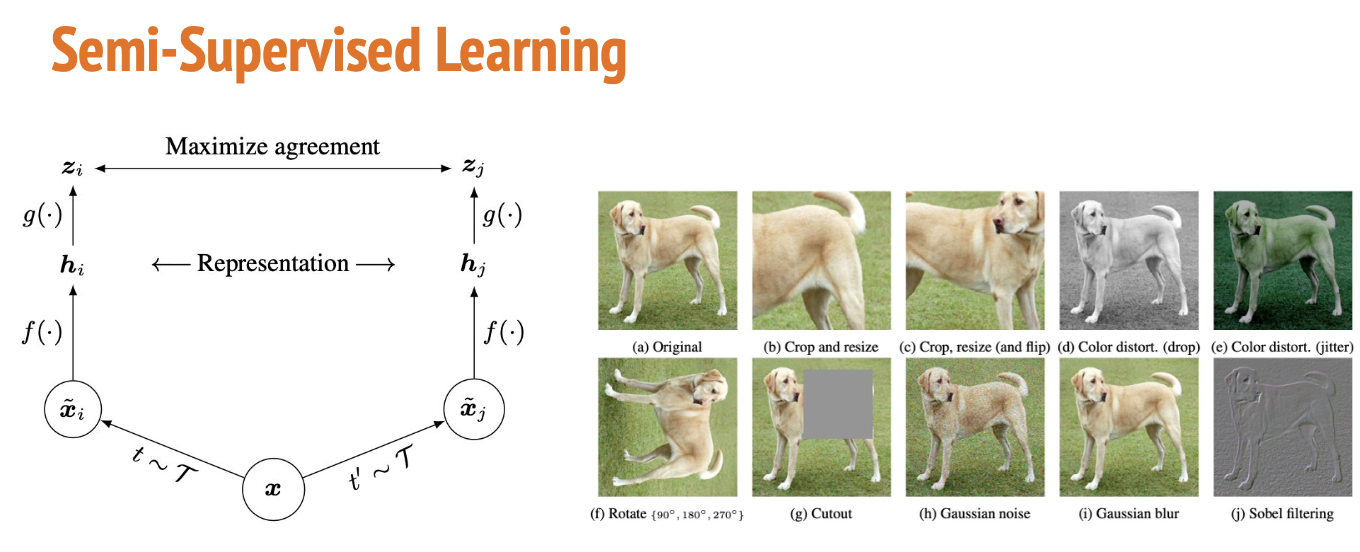 혹은 두 개의 다른 이미지로부터 특징을 뽑으면 다른 것이 나와야 된다 라고 하는 그런 조건을 가지고 학습 하게 된다면 이 이미지에 어떤 공통적인 특성들, 유의미한 특성들을 추려내게 될 수 있고 이렇게 Unlabeled된 데이터로부터 정보를 추려내서