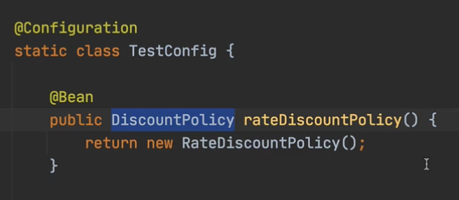 이 반환 타입을 인터페이스로 적는 이유는 뭘까요? RateDiscountPolicy로 하면 조회할 때 더 편하지 않을까요?
