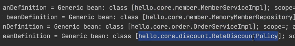 이렇게 getBeanDefinitionNames()으로, 컨테이너에 등록한 bean의 이름을 배열로 한 이름들을 꺼낼 수 있습니다.
