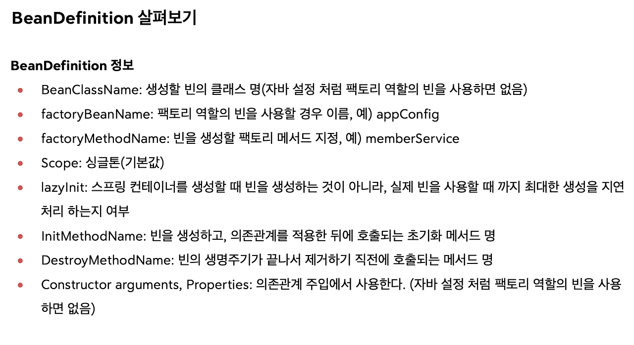 그래서 스프링 컨테이너가 BeanDefinition 정보를 가지고 동작한다고 보시면 되구요.