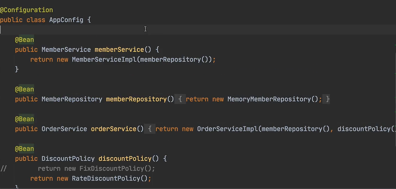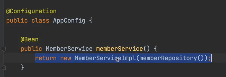 이렇게 되어있는데, 이걸 보고 "아 AppConfig에 있는 memberService 라는 메서드를 호출해서, memberService를 실제 빈으로 생성할 수 있구나" 라고 이해할 수 있습니다.