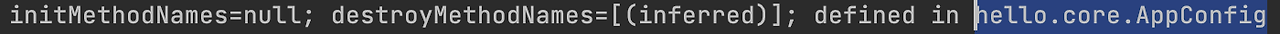 그리고 초기화 메서드, destroy 메서드 이런 것도 있고, 실제 정의는 hello.core.AppConfig 여기에 되어있다는 것도 알려줍니다.
