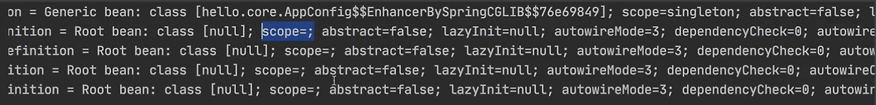 InitMethodName, DestroyMethodName은 뒤에 빈 라이프 사이클에서 말씀드리겠습니다. 아무튼 그냥 이러한 정보들이 있다는 정도만 이해하면 됩니다.