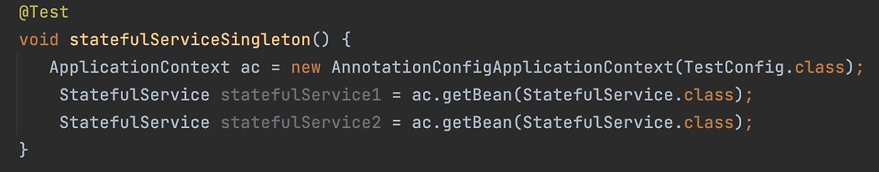 20000원이 나오겠죠. ac를 쓴 순간부터 빈으로 등록되는 모든 객체가 싱글톤이므로, StatefulService가 싱글톤이고,
