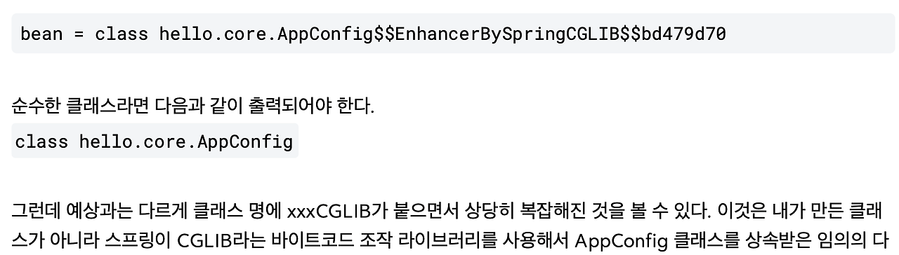 드디어 우리가 만들었던 순수한 AppConfig가 그대로 호출이 되죠. CGLIB 기술을 안 씁니다.
