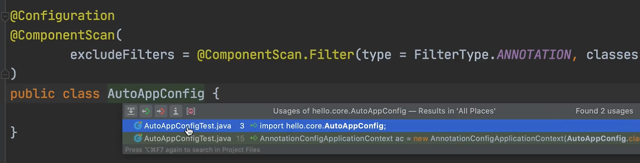 한번 간단하게 돌려보면 되는데요. AutoAppConfig에서 잠깐만 해볼게요.