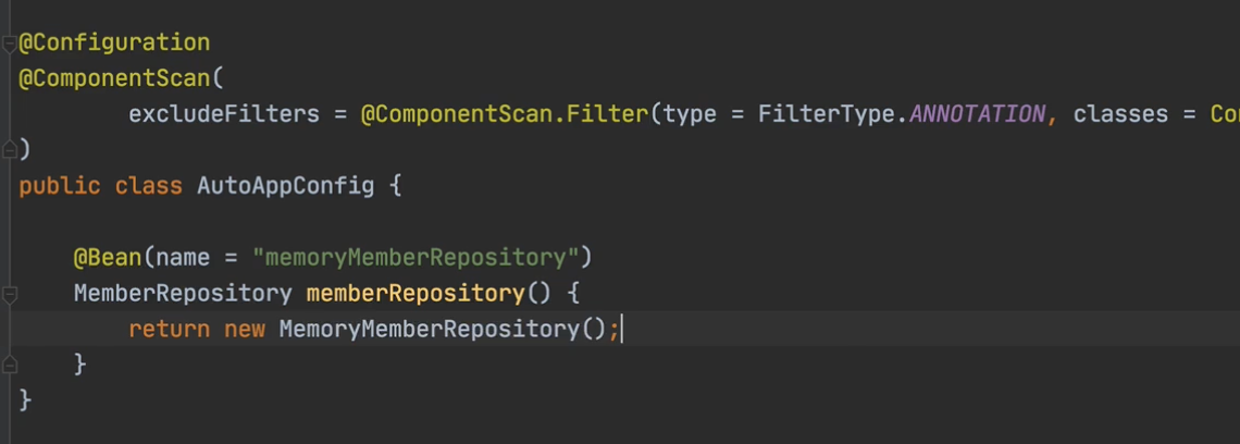 지금 memoryMemberRepository가 AutoAppConfig에 등록이 되어있는데,
