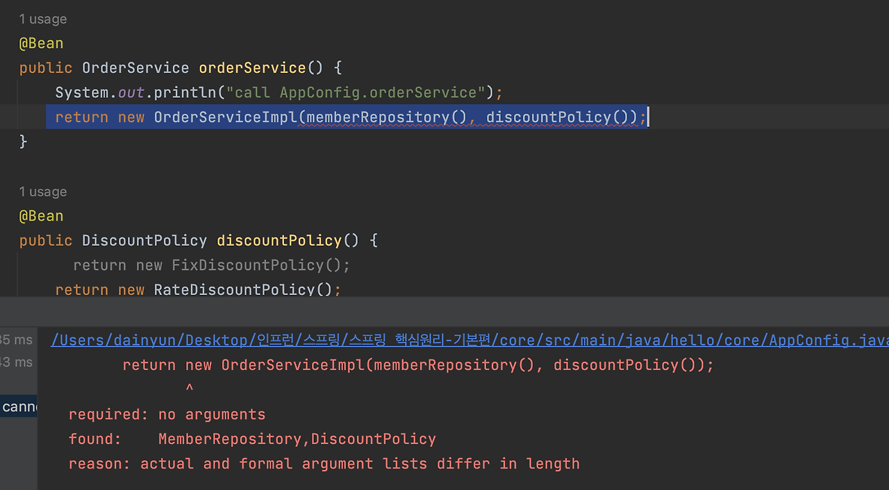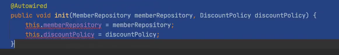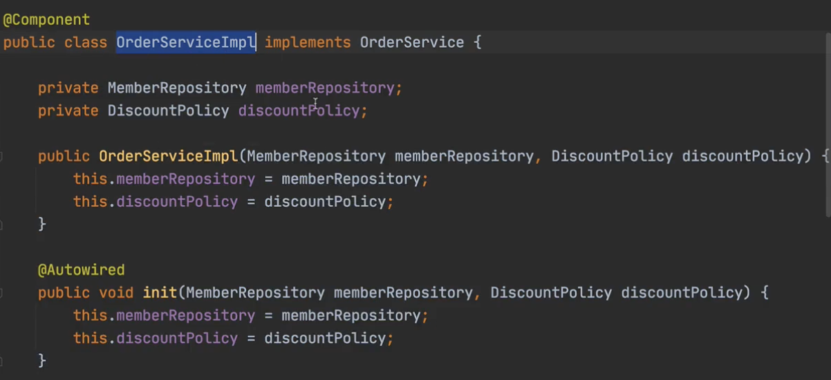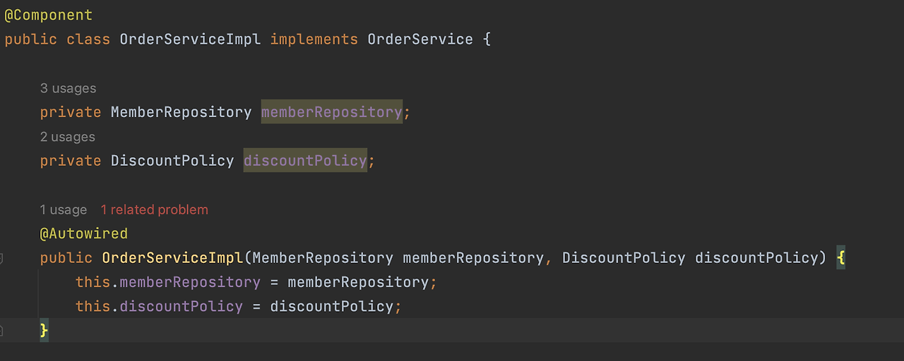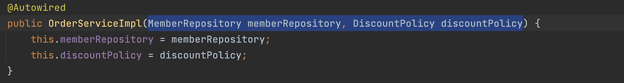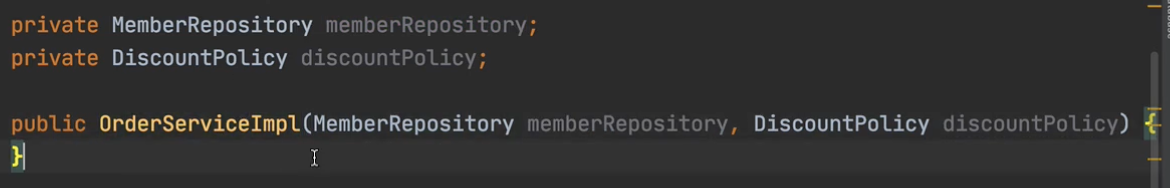 '아 참! 얘는 memberRepository랑 discountPolicy가 필요하지??' 라고 바로 인지할 수가 있어요. 굉장히 유용합니다.