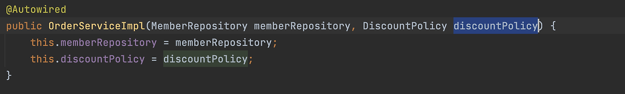 @Autowired를 하면, 생성자 파라미터로 들어가는 discountPolicy가 타입으로 조회되거든요.