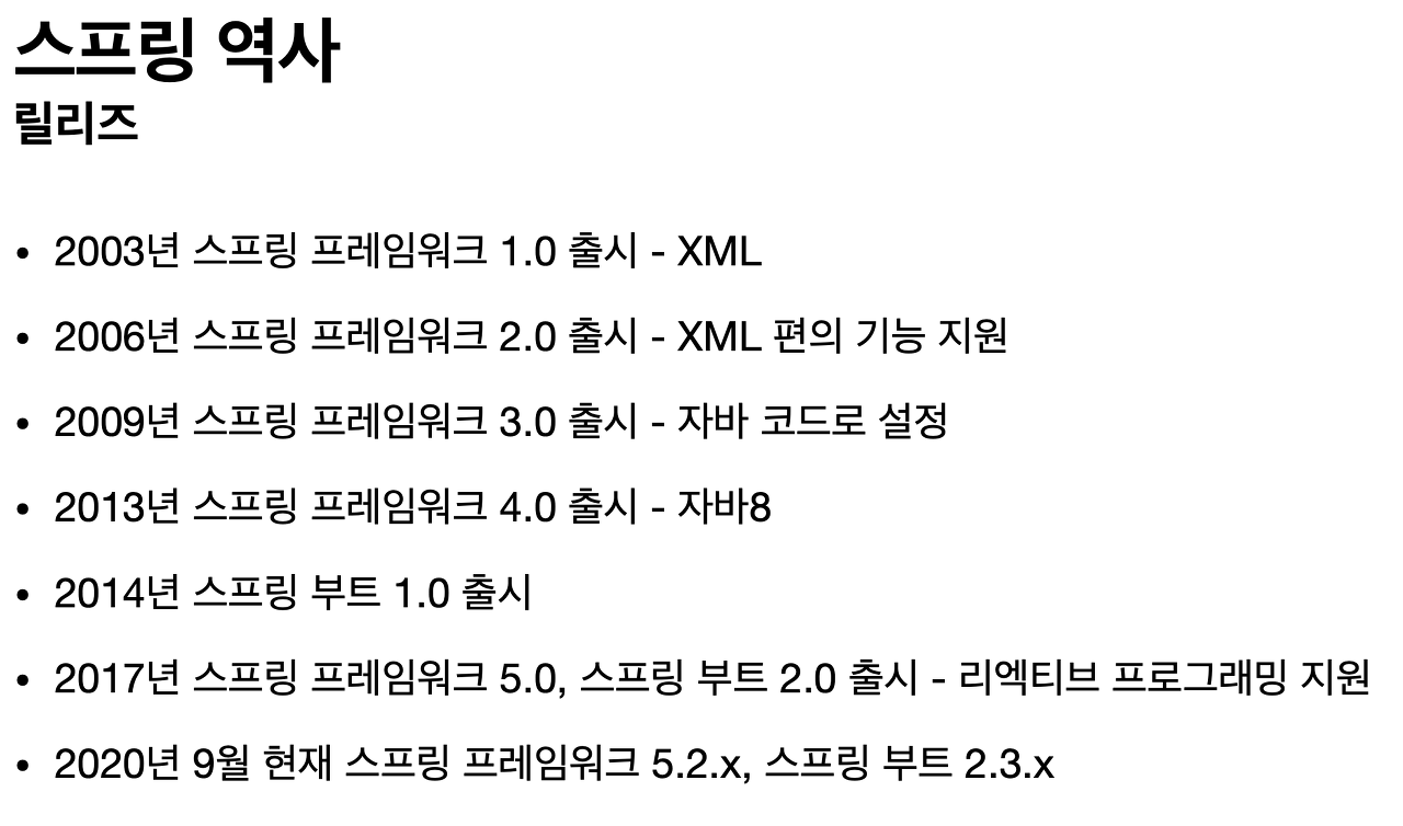 자 그러면 본격적으로 스프링의 역사에 대해서 말씀드릴게요.