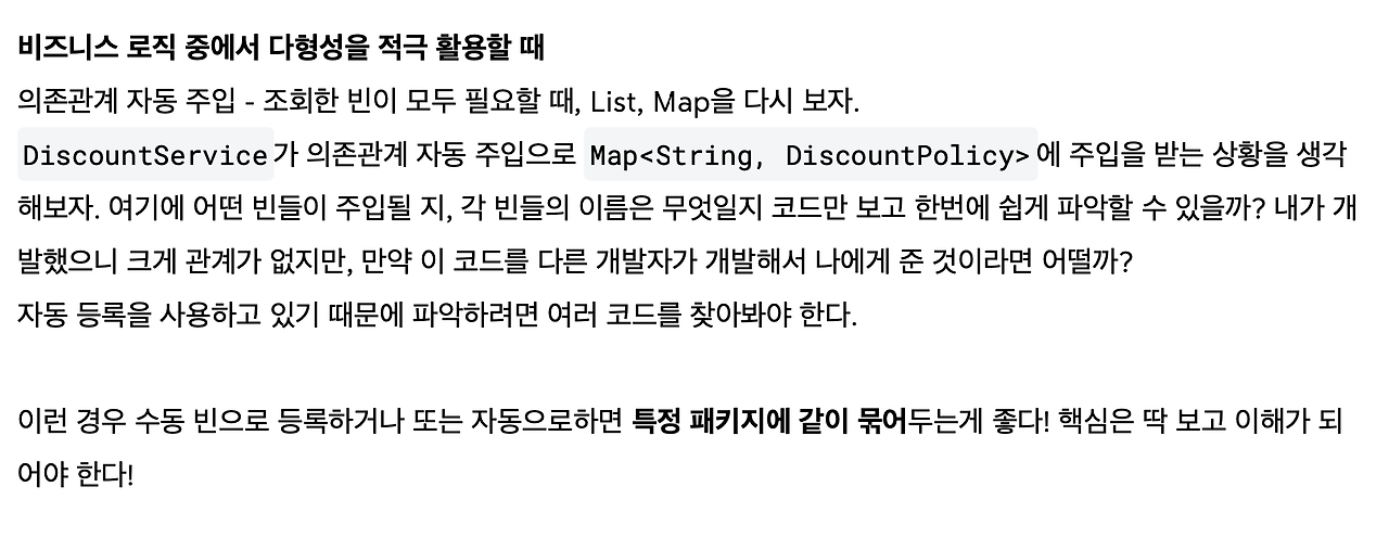 그런데 비즈니스 로직 중에서 다형성을 적극 활용할 때는 수동 빈 등록을 하는 게 더 유리한 경우도 있어요.
