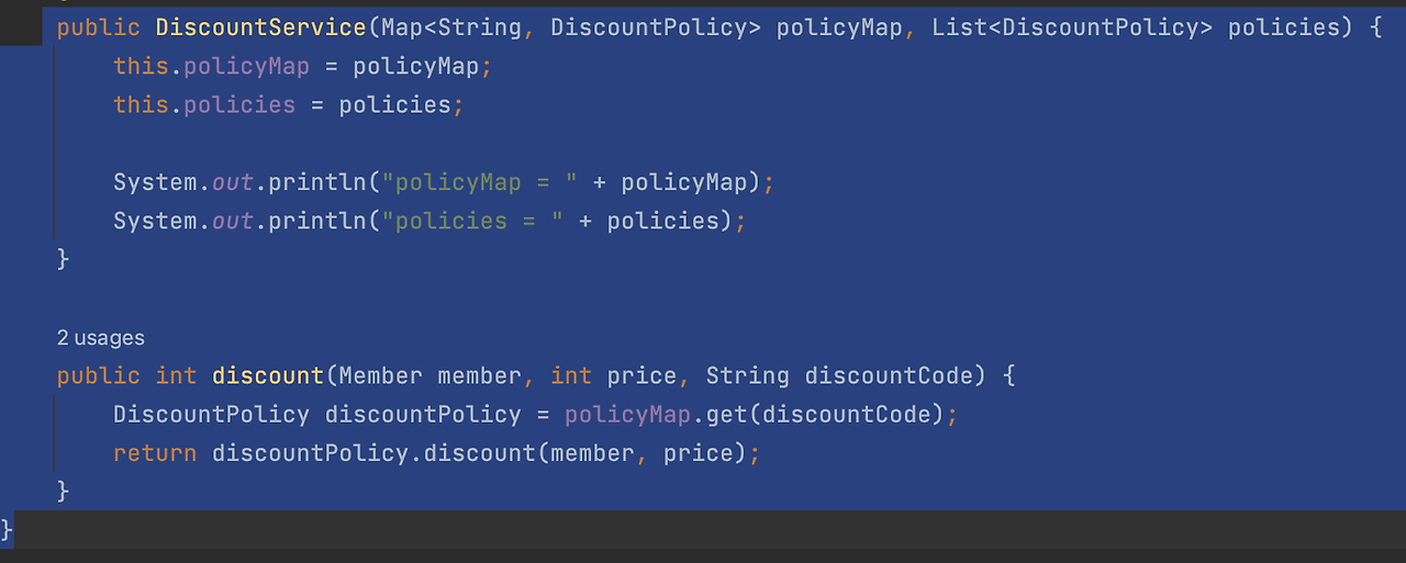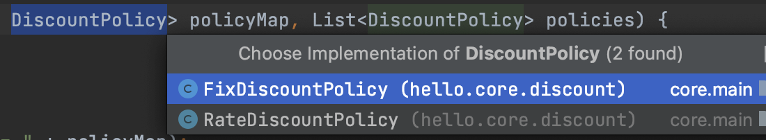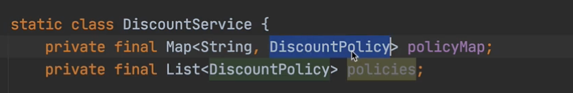 내가 직접 뭐가 들어올지 DiscountPolicy 코드를 열고 들어가봐야 돼요. (cmd + option + B)