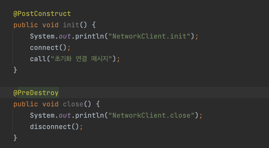 @PostConstruct는 객체 생성이 된 이후에, @PreDestroy는 소멸되기 전에 아주 이름 잘 지었죠?