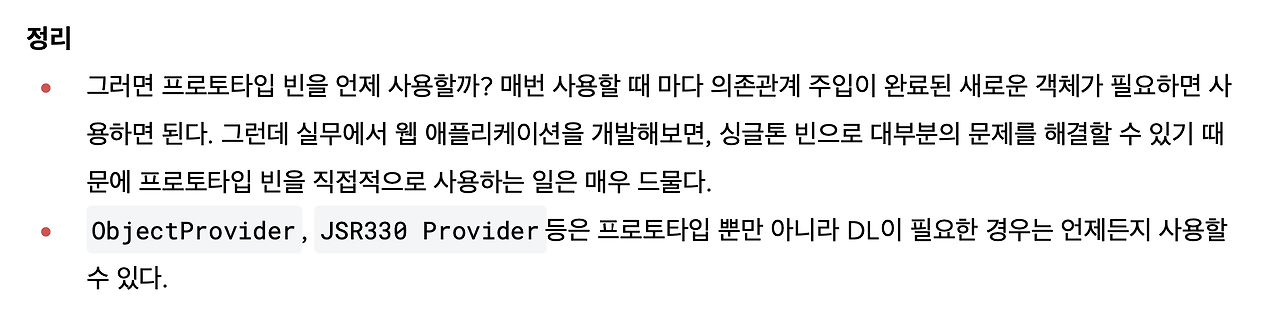 ObjectProvider , JSR330 Provider 등은 프로토타입 뿐만 아니라 DL이 필요한 경우에는 언제든지 사용할 수 있습니다.