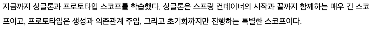 우리가 지금까지 싱글톤과 프로토타입 스코프를 학습했죠.