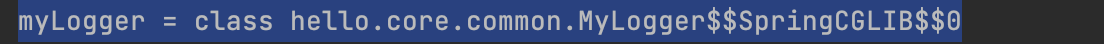 결과를 확인해보면, 우리가 등록한 순수한 MyLogger 클래스가 아니라, MyLogger$$EnhancerBySpringCGLIB이라는 클래스로 만들어진 객체가 대신 스프링 빈으로 등록된 것을 확인할 수 있죠.