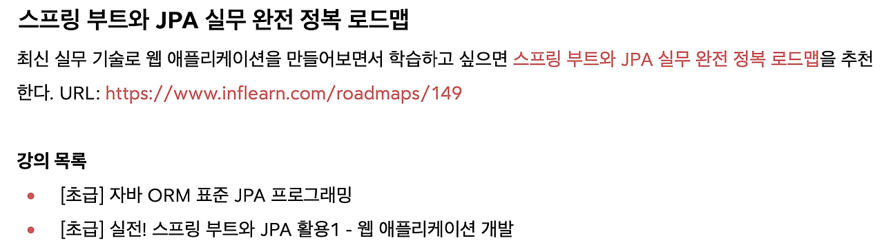 그래서 이 두개까지 딱 배우면, 실무에서 개발할 수 있는 스프링 부트와 JPA 관련된 실무 웹 애플리케이션 개발에 기본기를 꽉 다졌다고 보시면 되고, 제가 생각할 땐 이거를 정말 완벽하게 이해하시면 당장 실무에 들어가도 돼요.