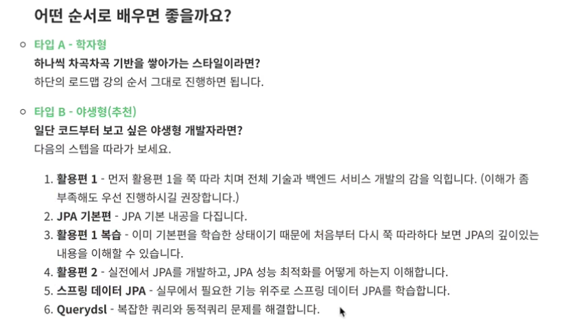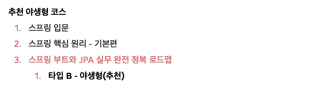 그러면 그 다음에 스프링 부트와 JPA 실무 완전정복 로드맵에 이 야생형 코스로 들어가셔야 돼요.