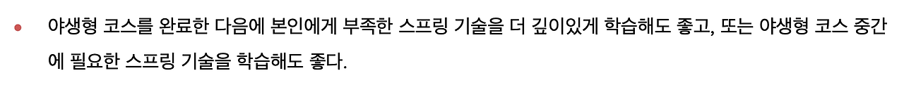 개인적으로는 이 야생형 코스를 다 마치신 다음에 부족한 스프링 기술들을 하나씩 학습하는 것을 추천을 드립니다.