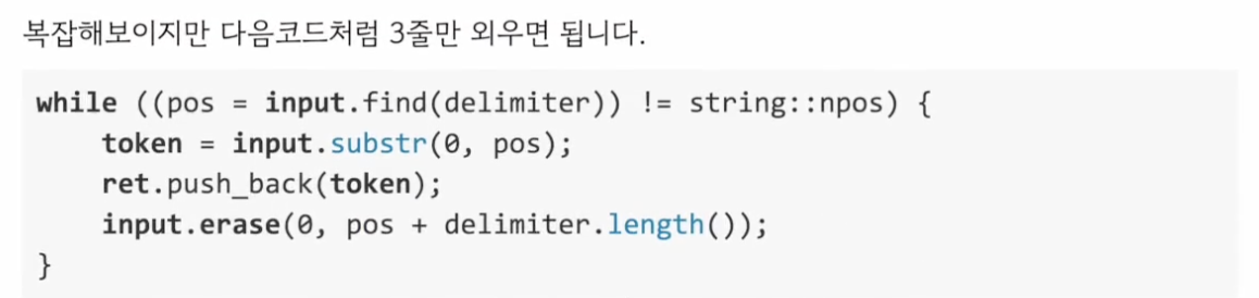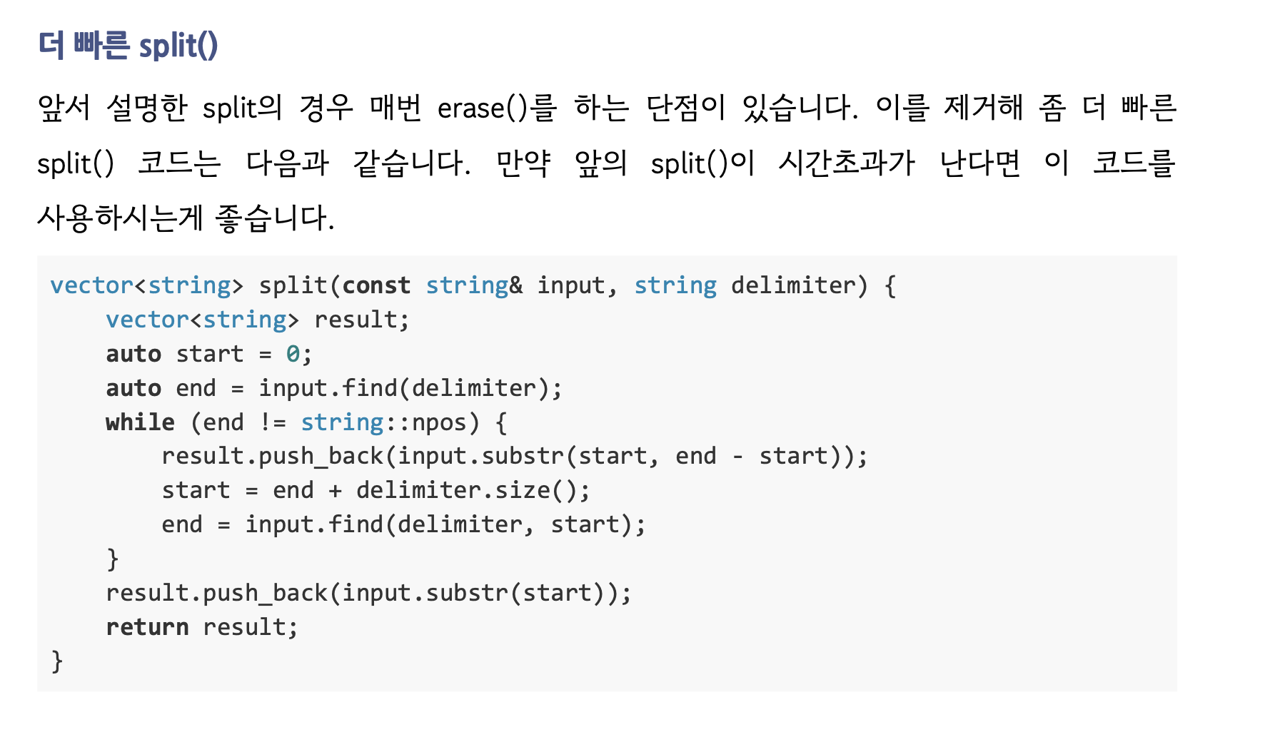 C++에서는 이 split() 함수를 지원하지 않아서 우리가 만들어야 한다.