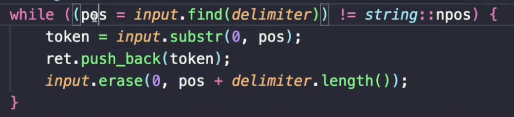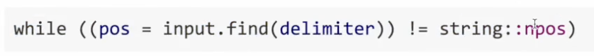 이 루프가 또 돌면서, d 라는 delimiter를 찾는다. 근데 더이상 input 문자열에는 d가 없기 때문에 find 메서드가 string::npos를 반환해서 루프가 종료된다.